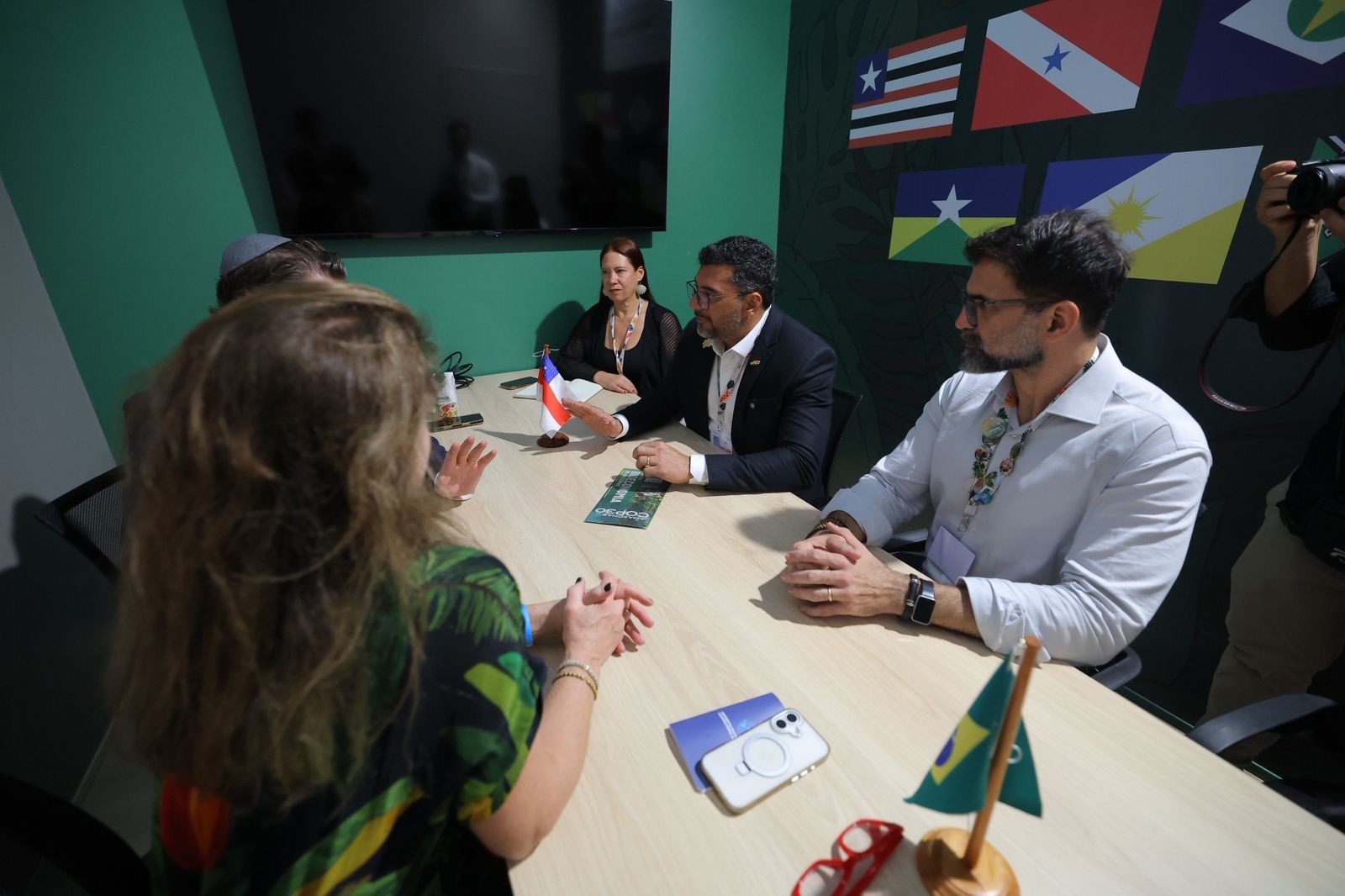 Na conferência, o governador reuniu-se com Anette Kilmer, representante do Banco Interamericano de Desenvolvimento (BID), para discutir ações voltadas à adaptação climática e segurança hídrica, com foco em saneamento, habitação e infraestrutura urbana sustentável. O encontro ocorreu no estande do BID, que apresentou na COP30 os programas Prosamin+ e Prosai como referências internacionais em resiliência urbana e inclusão social.