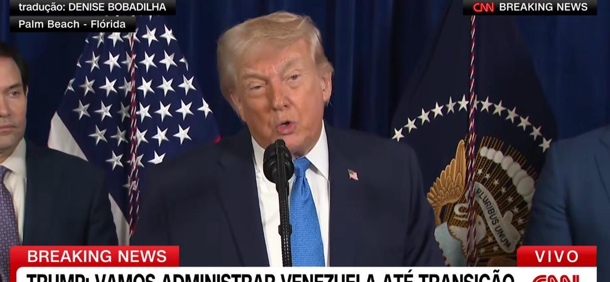 Trump declarou que os Estados Unidos permanecerão na Venezuela até que haja uma “transição adequada” de poder. Segundo ele, o país será administrado provisoriamente para garantir estabilidade, segurança e justiça. “Nós estamos lá agora e ficaremos até que uma transição apropriada aconteça”, afirmou, ao defender a reconstrução do setor petrolífero venezuelano com investimentos de empresas americanas.